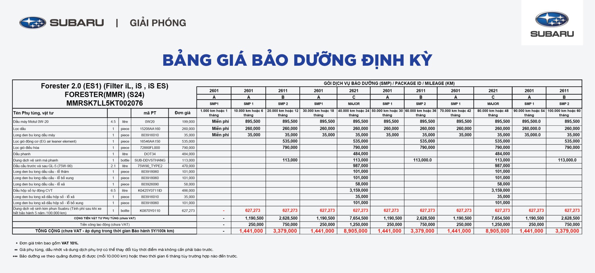 Tham khảo thêm chi phí bảo dưỡng xe Subaru Forester 2025 trong 5 năm không giới hạn km tại Subaru Hà Nội