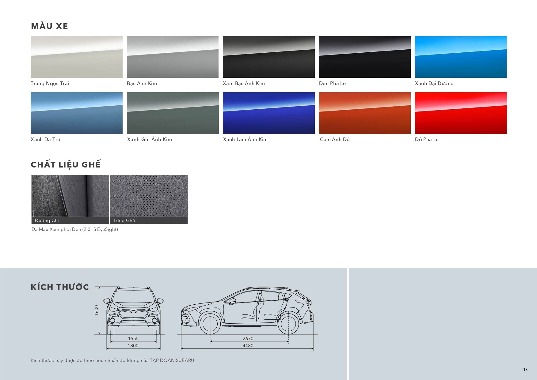 Ngoại thất Subaru Crosstrek 2025 có 10 màu tuỳ chọn bao gồm: