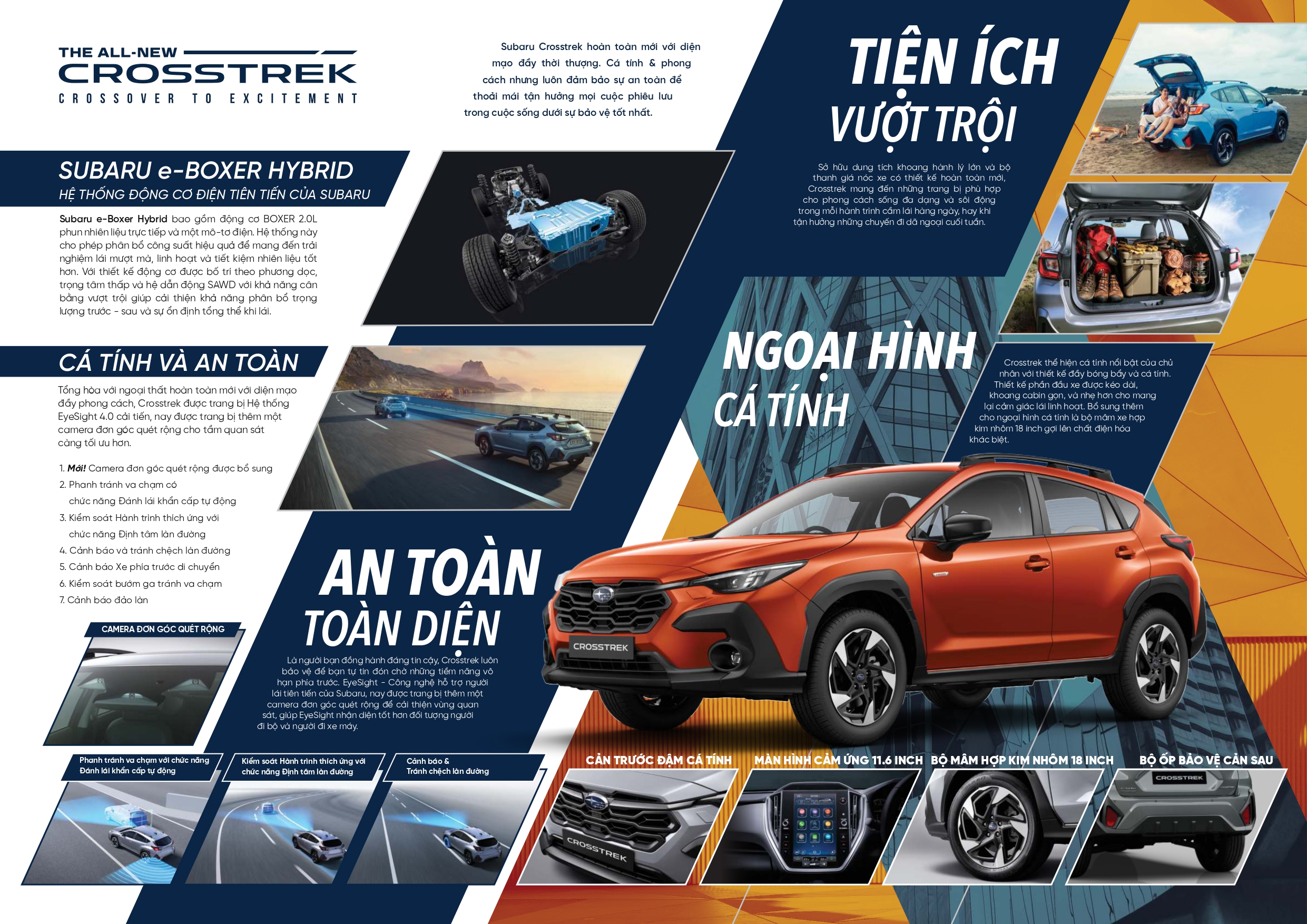 Bừng cháy đam mê và thỏa sức phiêu lưu trên đường phố với Subaru Crosstrek Hoàn Toàn Mới. Mẫu xe đặc biệt từ Subaru mang đậm phong cách sống đầy năng động, trẻ trung và thời thượng trong một diện mạo cá tính và thu hút trên mọi cung đường bên cạnh khả năng vận hành ưu việt và sự an toàn xuất sắc đậm chất Subaru.