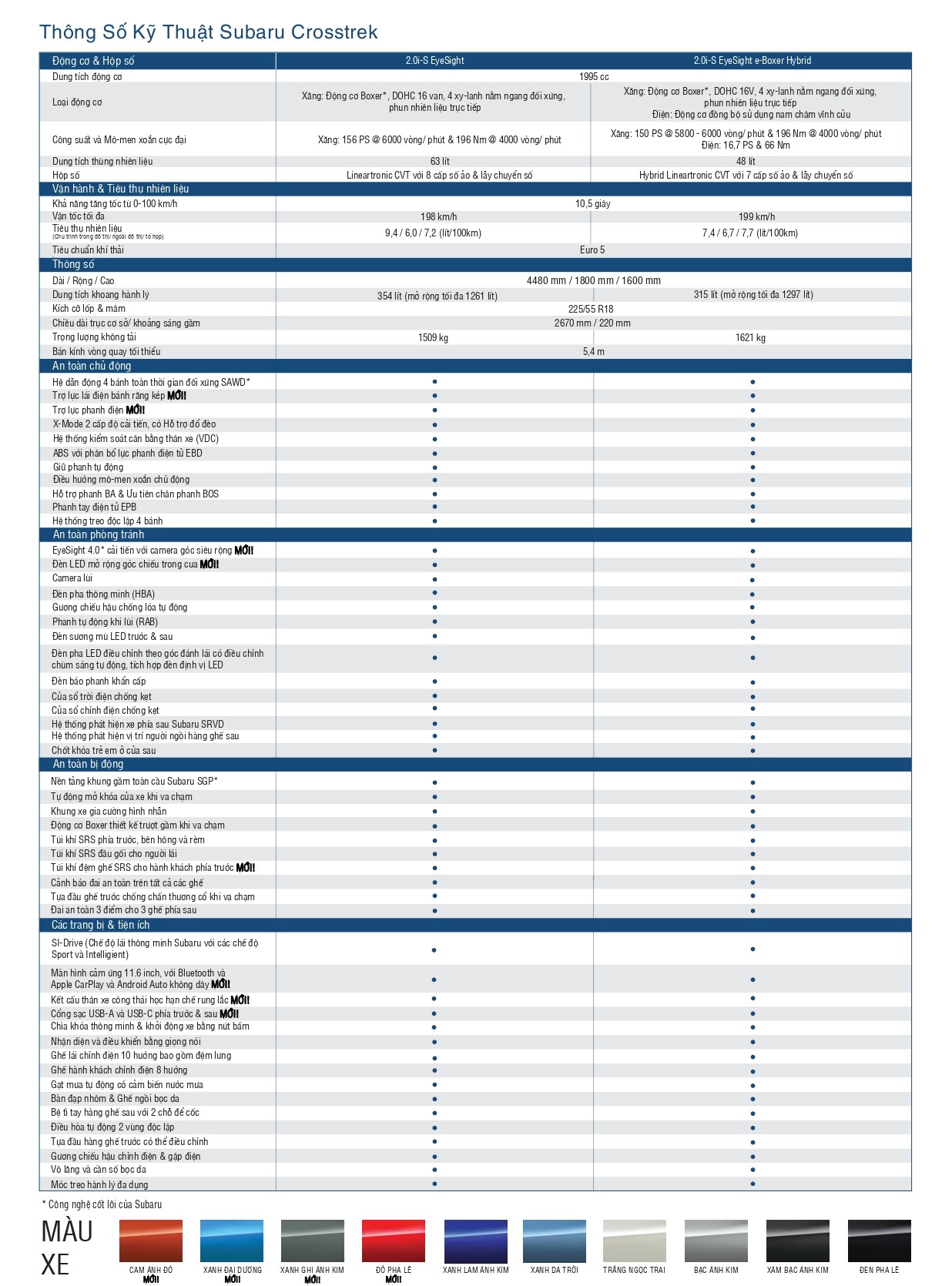 Subaru Crosstrek 2025 được phân phối tại Việt Nam 02 phiên bản Crosstrek 2.0i-S EyeSight và Crosstrek 2.0i-S EyeSight e-Boxer Hybrid với mức giá trong năm 2025 là 899 triệu và 1.029 triệu