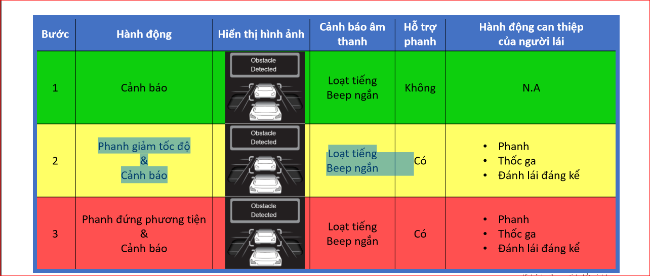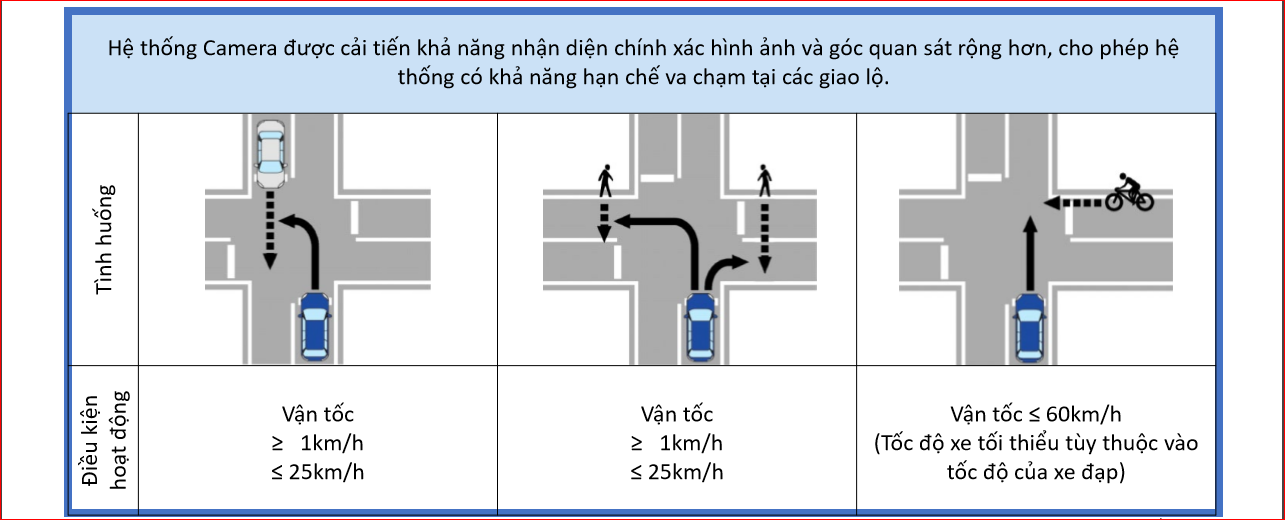 khi đi lùi, và tự động phanh tránh va chạm.