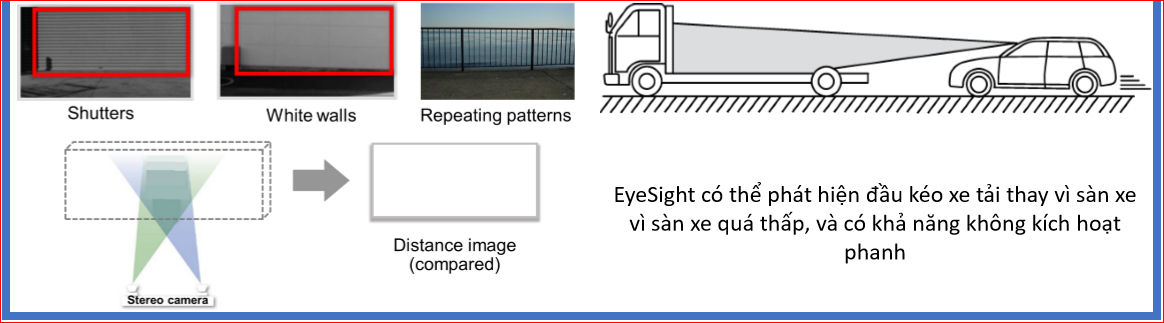 EyeSight không thể phát hiện vật thể nằm ngoài tầm quan sát.