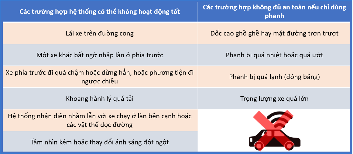 Phanh tránh va chạm – Hạn chế