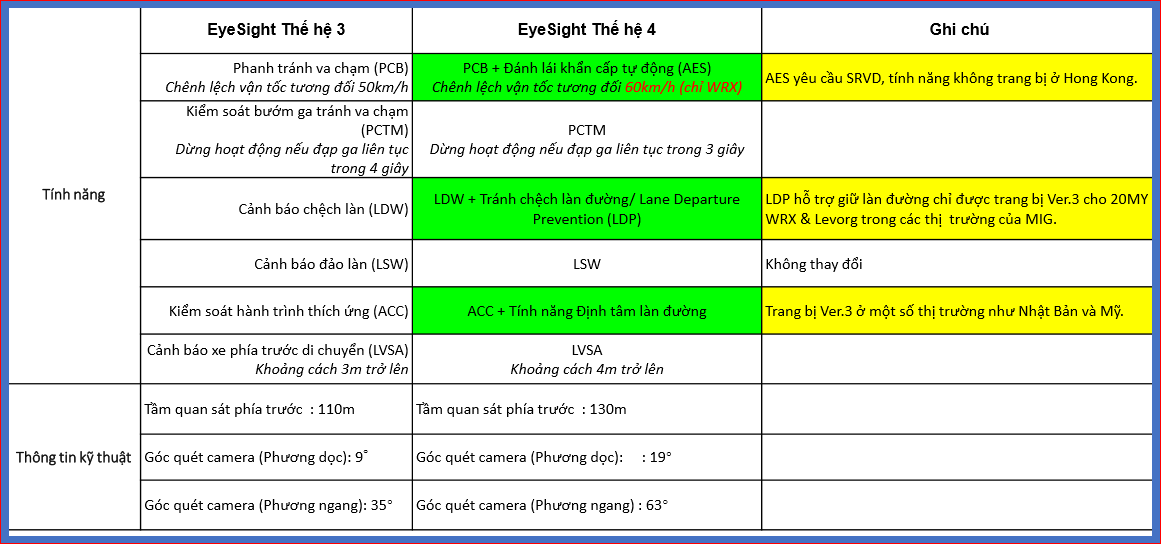 Công nghệ EyeSight 4.0 đã đạt nhiều giải thưởng, nay được nâng cấp với bộ stereo camera cải tiến với góc quan sát rộng hơn và 3 tính năng mới:
